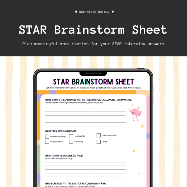STAR Interview Toolkit 2-Page Printable Bundle Story Planner + Brainstorm Worksheet for Job Seekers, Corporate Creatives and Career Prep