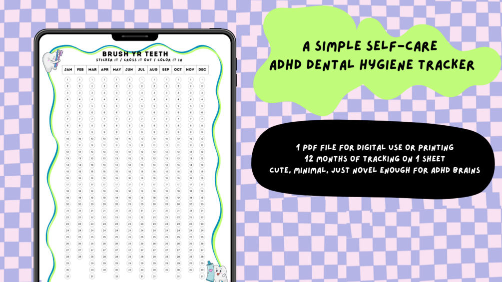 A minimalist-but-motivating printable to help you remember to brush your teeth, whether you’re neurodivergent, depressed, or just forget sometimes.